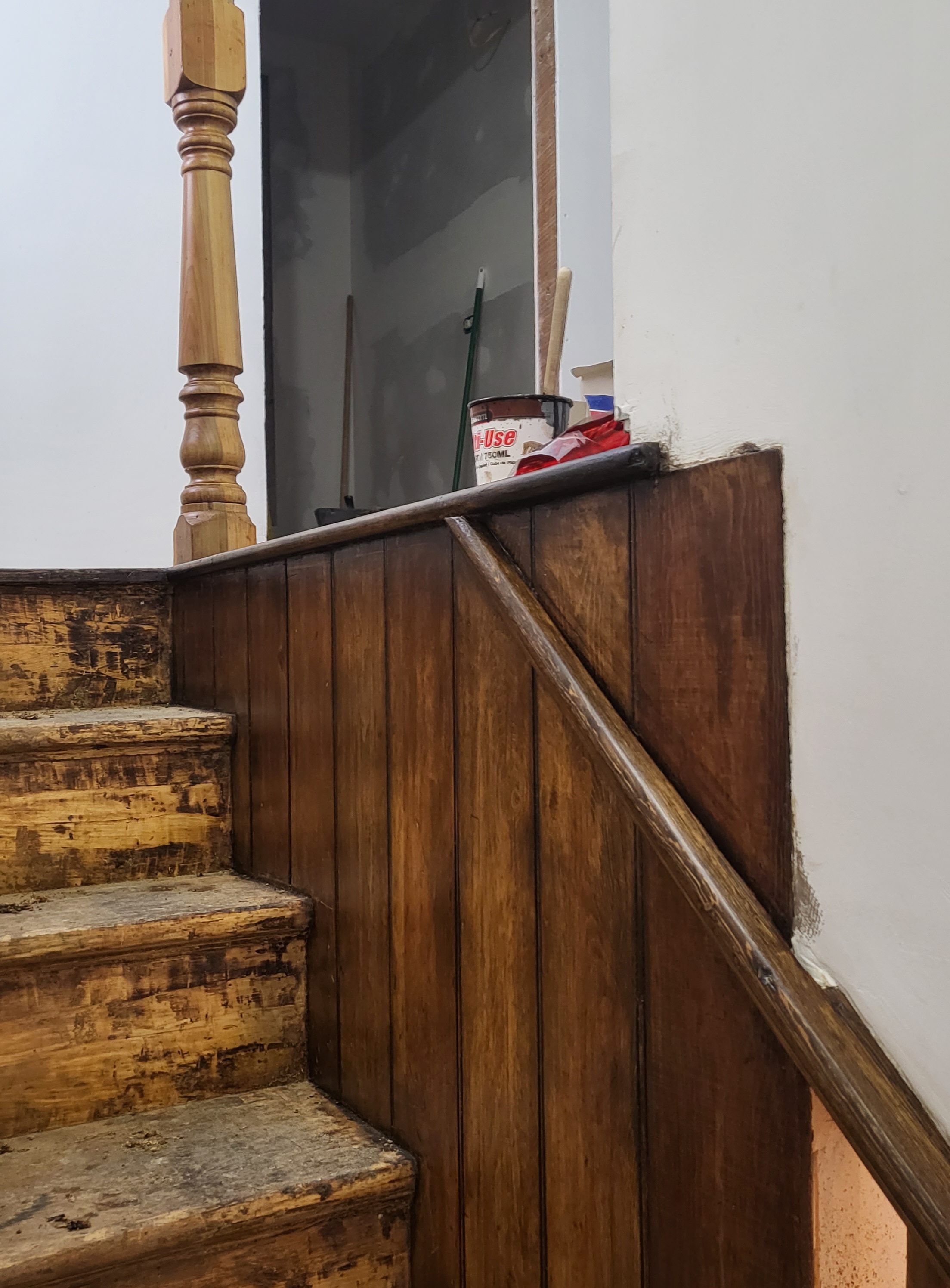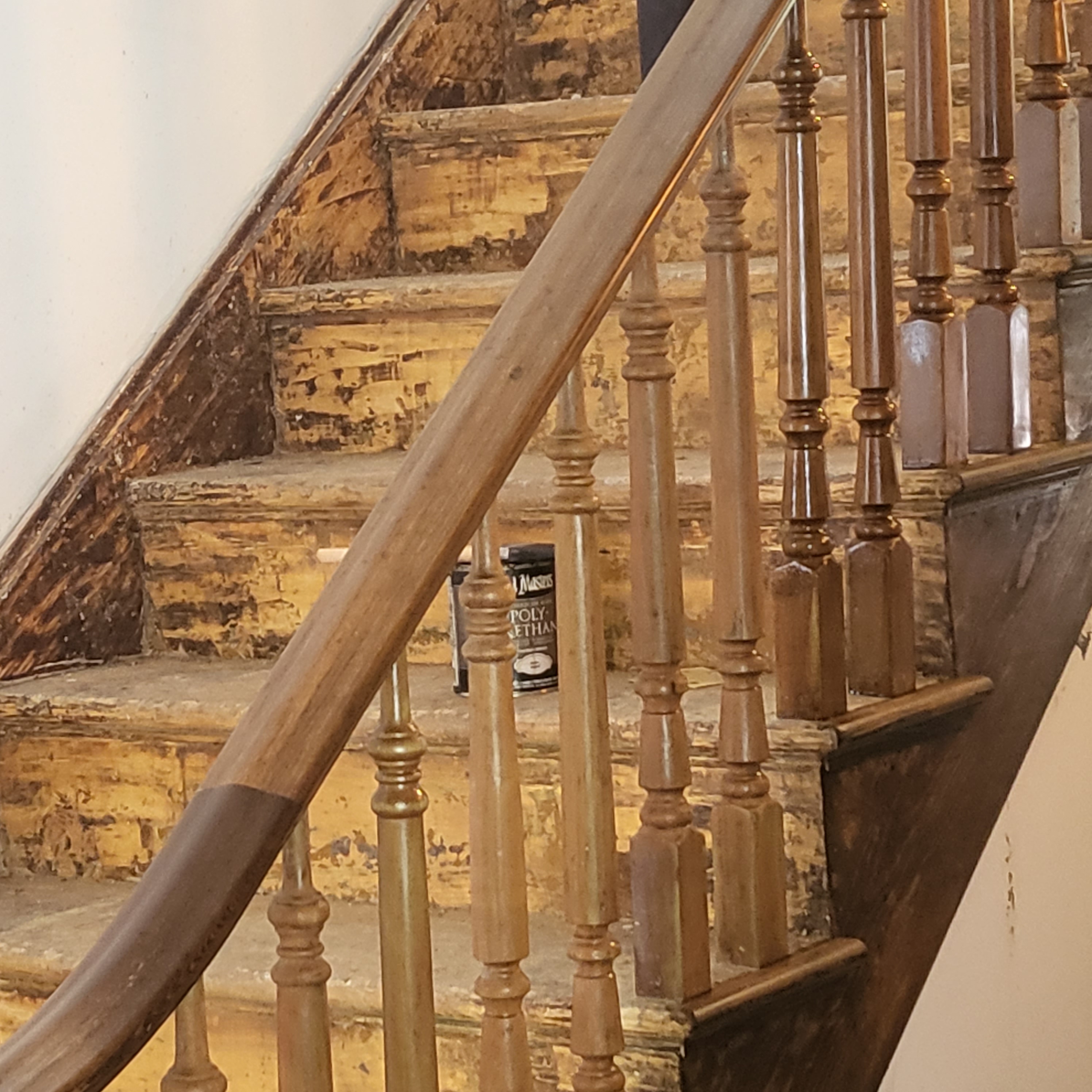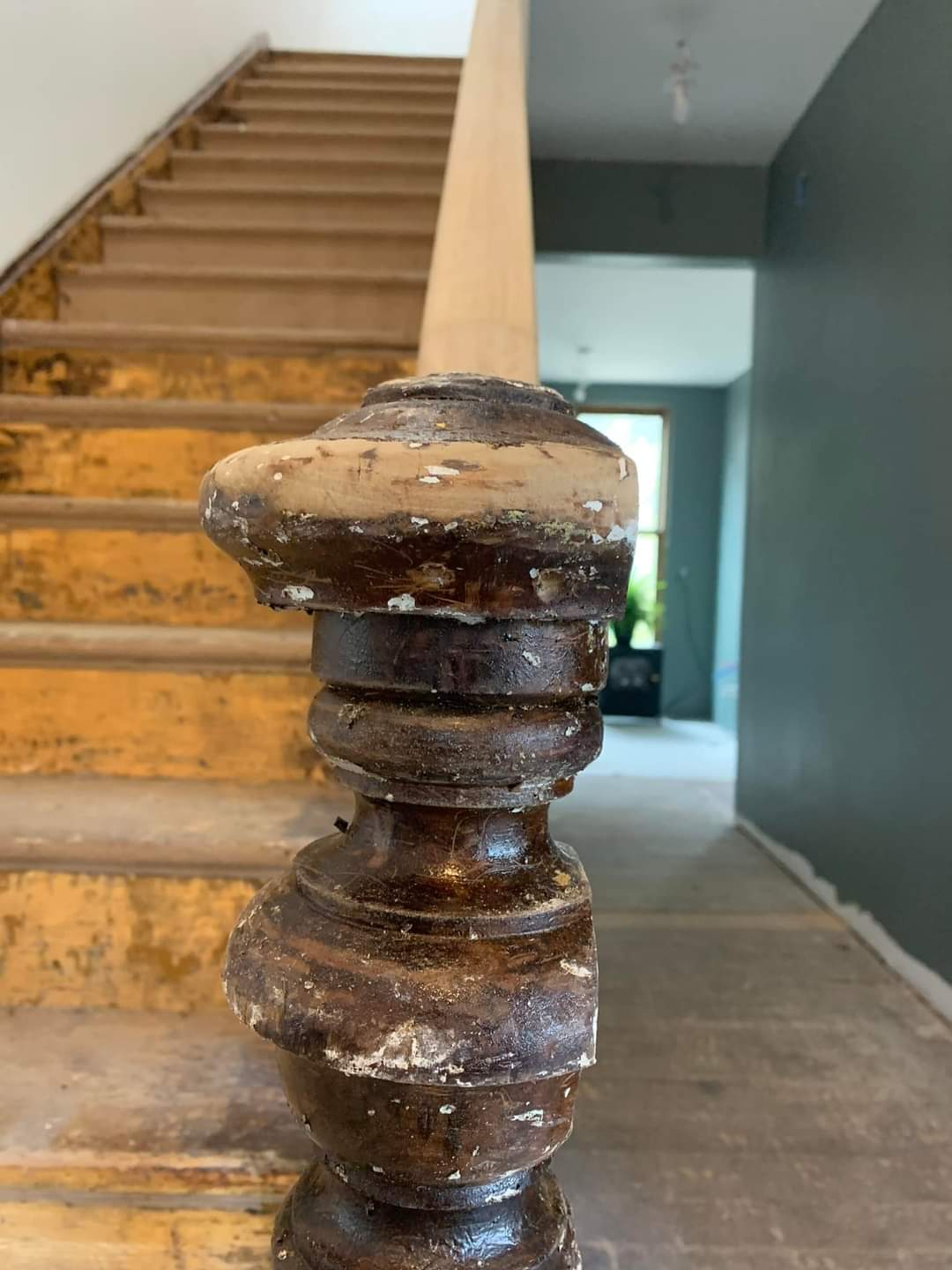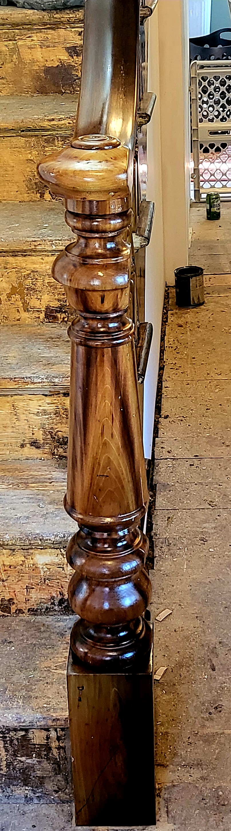 These are the stages of that beautiful newel post. I can just imagine all the years of so many people grabbing it to ascend or tossing coats on it when they came inside.