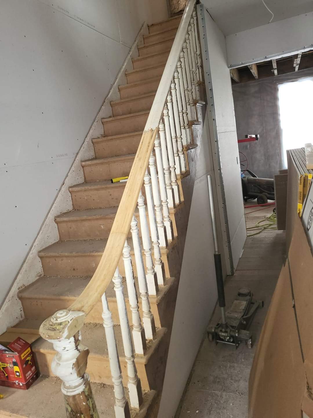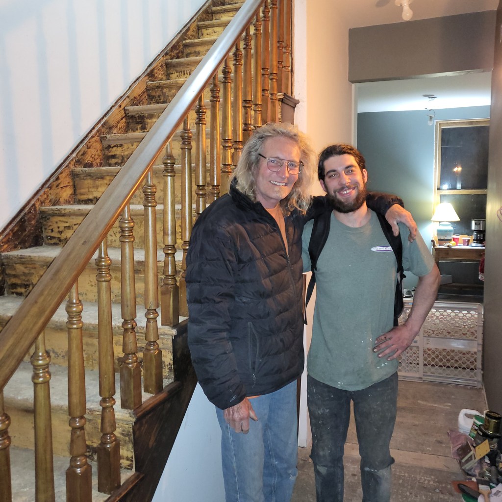 “You did what?” he laughed. Like it was a bad idea. “You invited some guy you don’t know to live in Deadwood for 1-2 weeks?” Like that wasn’t a normal thing to do. He wasn’t living with us, after all! Then the details and explanations started and by the end of the discussion, while not 100% sold on the deal, he agreed that the stairway needed special devoted attention and that neither of us, nor any great craftsman from the area, wanted to tackle the spindles, newel and railing, so it was the solution. We were inked, travel plans made, adjusted and our new friend Dylan Lorditch, of Lorditch Painting and Restoration in Charlton, MA was headed to the infamous town of Deadwood. You can find him on Facebook @Lorditch Painting and Restoration. He also has some pics on his personal page.