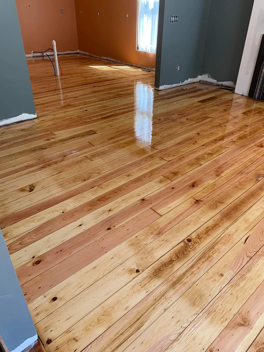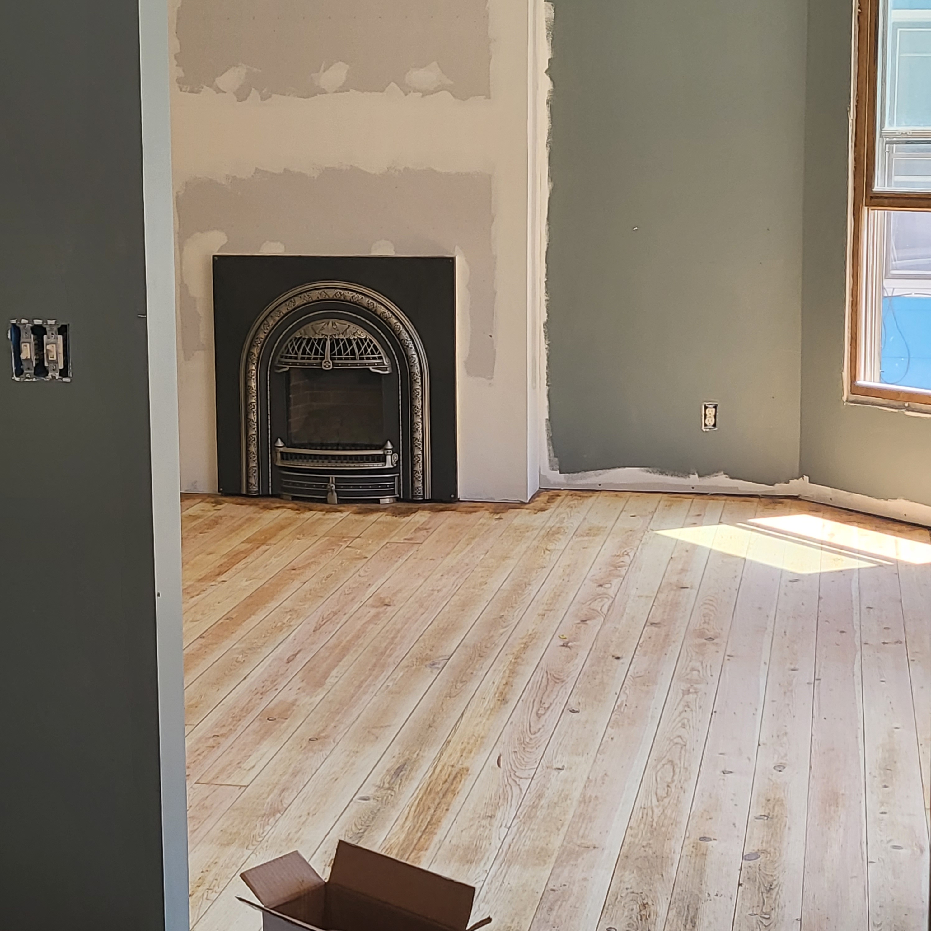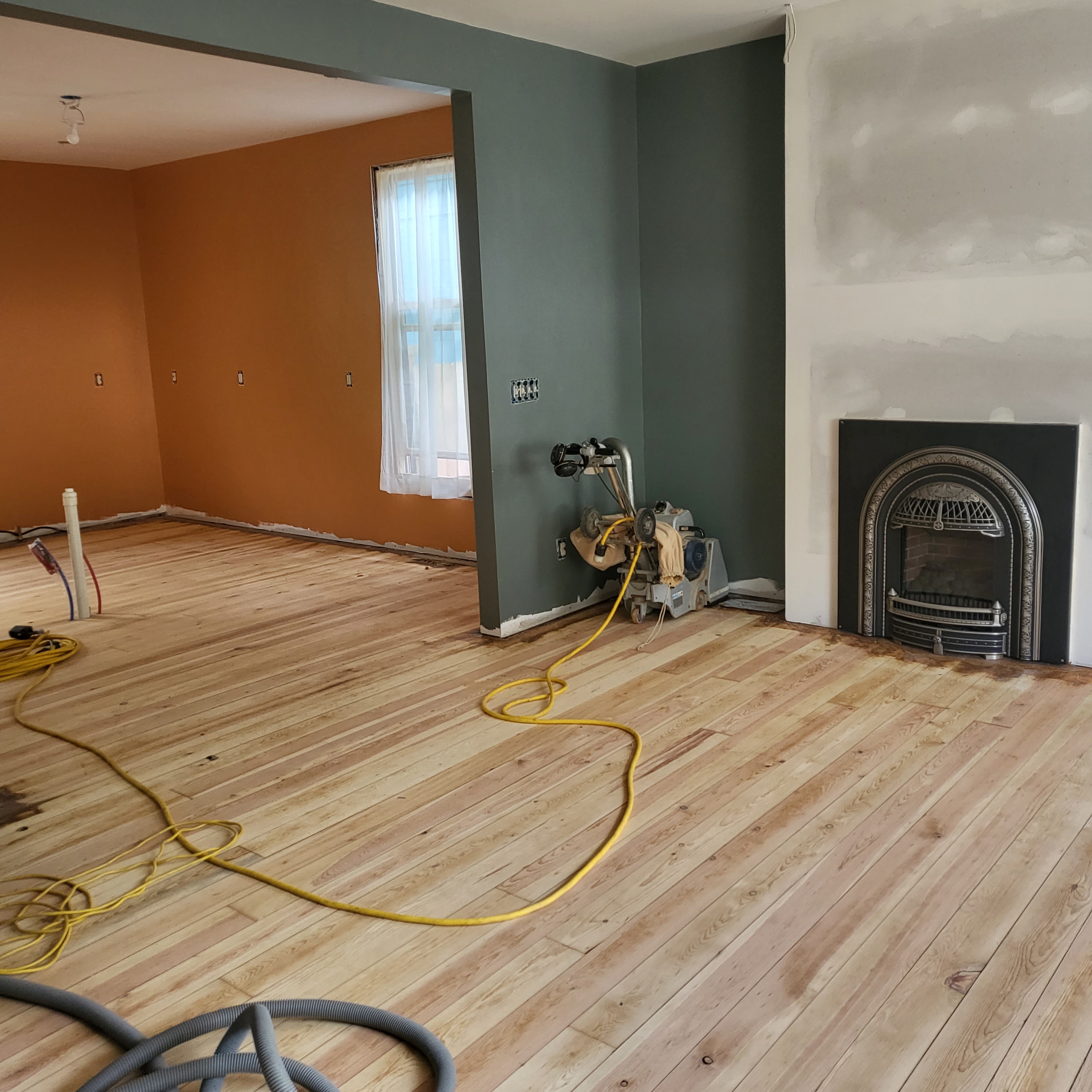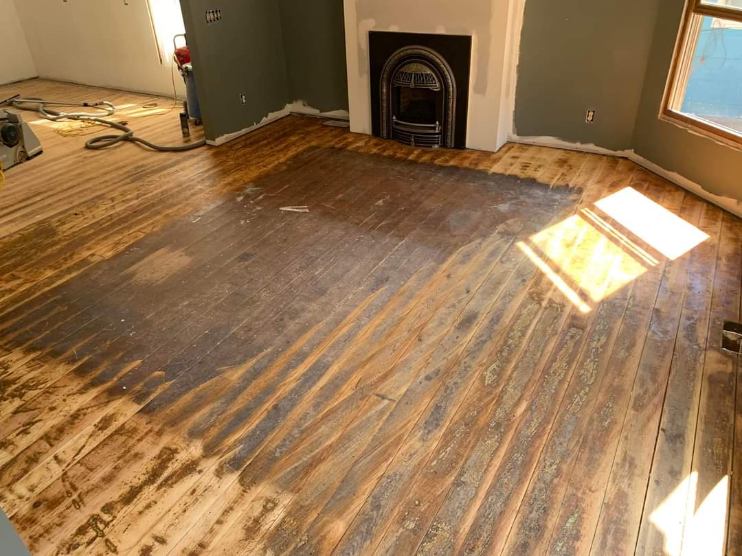 And… if you’re not floored by all of this exterior progress, you will be by the interior! I’d mentioned in my East Meets the Wild West post about the third D in our trifecta of talented men. Dusten joined the Dan/Dylan team and continued our work inside. The 1890s wide Douglas Fir floors have been restored to a beauty I am positive they’ve never had before.