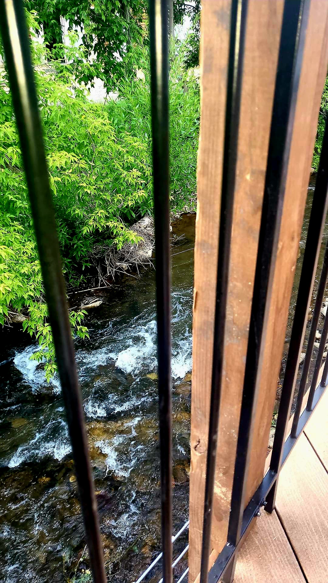 Last trip back to Charles I got to see firsthand the handy work Dan had done. In months of discussions and drawings with DHP and the City, he brought her deck to fruition. The sketch was a reality! As I walked through our make-shift back door, out toward the creek, I was greeted by a large span of suspended bliss. The classy black railing framed the edge which seemed to tower over White Wood Creek below. I was floored. It was just perfect. A dramatic outdoor living space that utilized that wreck of a rocky back yard.