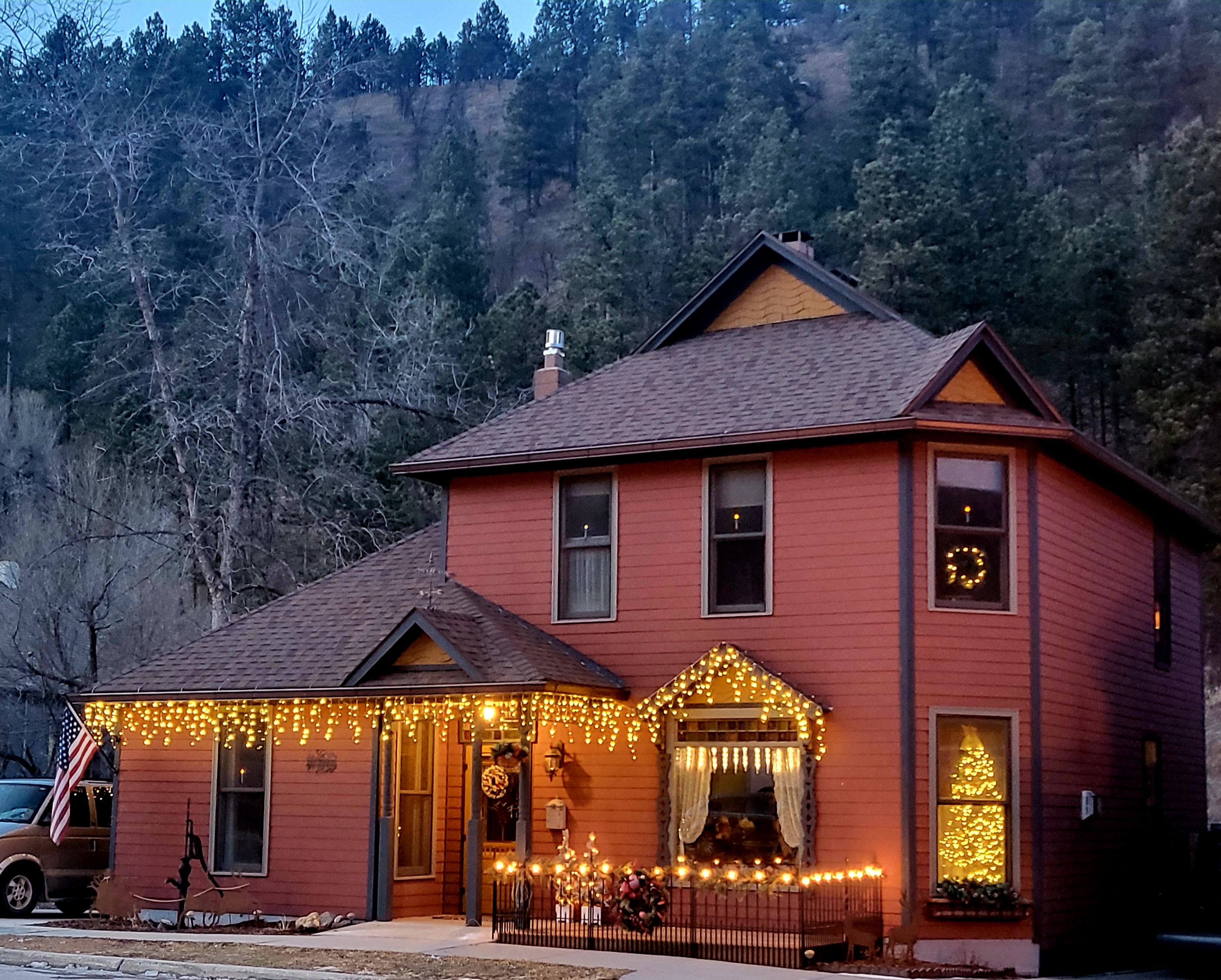 Fall rolled in and with it some sadness and disappointment. Older fam struggling even more with memory and falls. Younger fam negotiating all that it is to be a “kid” and “young adult”, and Dan & I just trying to keep it all together as we inch toward a 80%-20% transition away from Nebraska and to Charles. We had another Thanksgiving holiday apart. Mine completely alone with the cats and Tank, as the KC fam gathered the elders for a long overdue Kansas holiday. Anticipation of bad weather (NE/SD 511 is my favorite app) is always a stress but as the first real snow dumped on Deadwood, I was there to shovel, shovel, shovel and enjoy every minute of it (happily we have a puppy that loves snow as much as me). A quick to NE and back and we were decorating for Christmas #2. When I headed back to Friendly Friend, Charles was 85% adorned, trees were up and I was looking forward to the final 2023 return to Deadwood for the holidays. I made it back for some beautiful warm days. Charles got her fancy lights on for the holiday. She won the Peck’s Garden neighborhood lighting challenge (thanks for voting) and we were set for Santa! Unfortunately, family conflicts and sickness limited our celebration to just us for Jesus’s real birthday. We had a white Christmas, as I’d ordered. Our friend Brenda joined us and aside from me dumping the Marie Calendar pie all over the oven and floor, we had a wonderful holiday. Christmas #2 was a wrap.